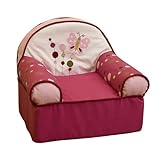 Lambs & Ivy 6735 Perfectly sized for a toddler to curl up in after a hard day of play, this soft slipcover chair features a fun butterfly appliqué and rich raspberry colors. -Chair is just the right size for a child. .Shades of pink with green and white accents. -A butterfly applique floats across the back of the seat. -Slip cover is removable and machine washable. -Part of the Raspberry Swirl Collection.